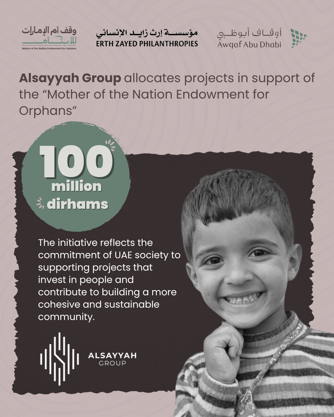 Alsayyah Grouphas allocated projects valued at AED 100 million in support of the “Mother of the Nation Endowment for Orphans” campaign, launched by the Endowments and Minors’ Funds Authority – Awqaf Abu Dhabi under the patronage of His Highness Sheikh Mohamed bin Zayed Al Nahyan, President of the UAE, with the aim of establishing a