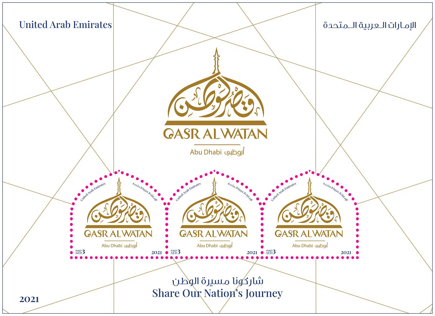 Recognizing the cultural legacy of postage stamps and the role they play in promoting, preserving, and commemorating the heritage and national history of a nation, Emirates Post Group unveiled– commemorative stamps in celebration of the Palace of the Nation, ‘Qasr Al Watan’. The stamp – which simulates the mesmerizing dome at the Palace – represents