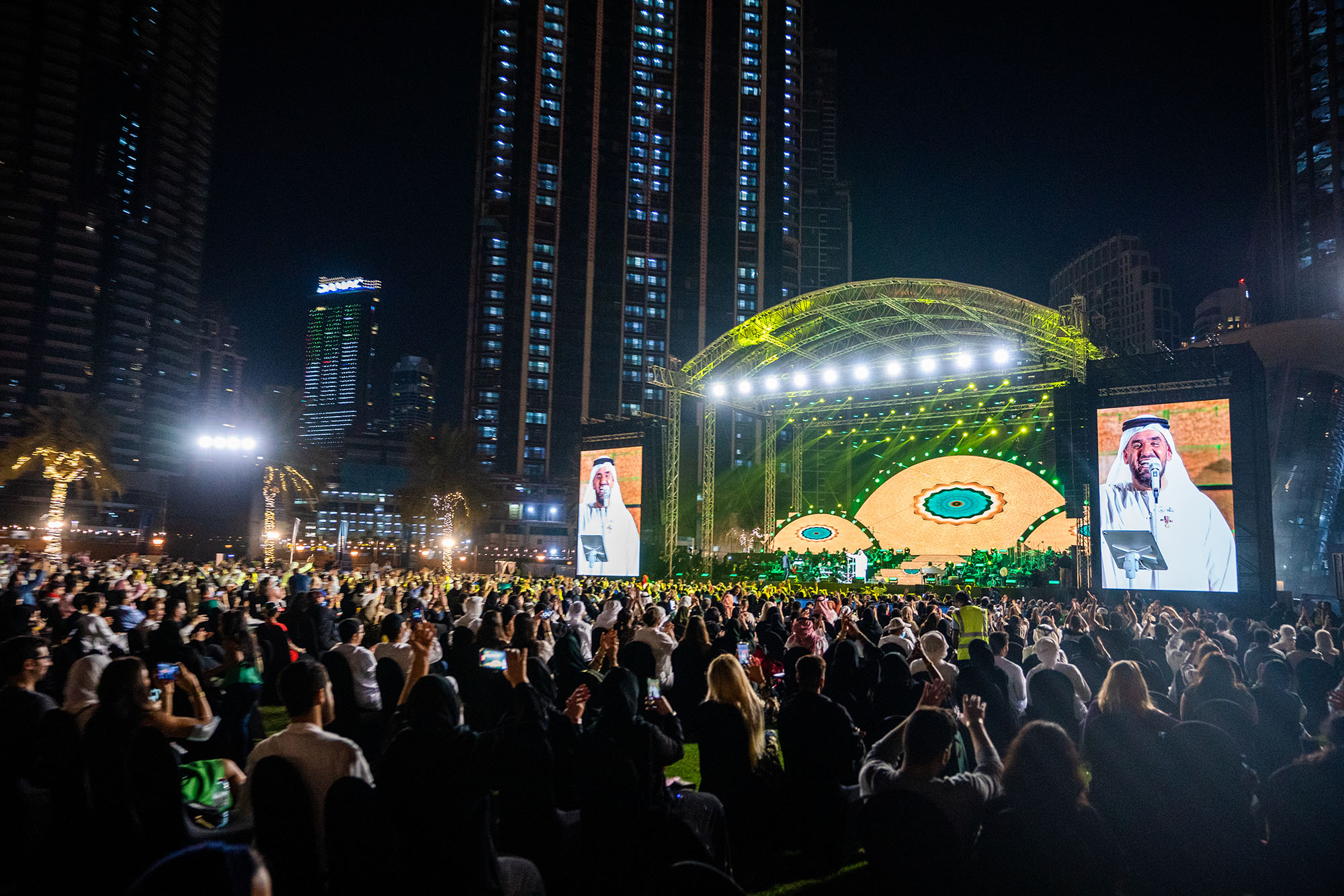 Between the Emirates of Dubai and Sharjah, the popular Emirati artist, Hussain Al Jassmi, “Ambassador Extraordinary and Plenipotentiary”, celebrated the 50th National Day of the United Arab Emirates, with the Emirati, Gulf and Arab audience participating in it between Burj Park in Dubai and Al Majaz Amphitheatre in Sharjah, presenting two large public concerts with