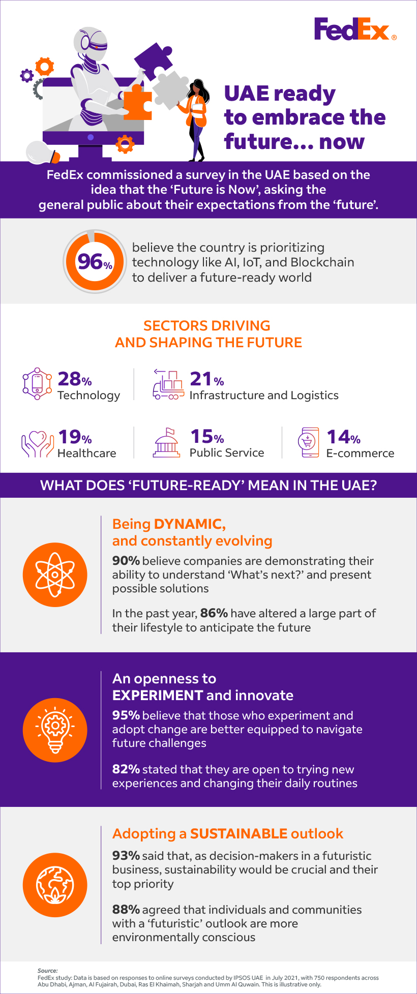 FedEx Express, a subsidiary of FedEx Corp. (NYSE: FDX) and the world’s largest express transportation company, today revealed the findings of its ‘Future is Now’ study* that offers insights into the UAE’s readiness to embrace the future. The UAE is at the cusp of change, with the pandemic accelerating the country’s digital transformation. From healthcare