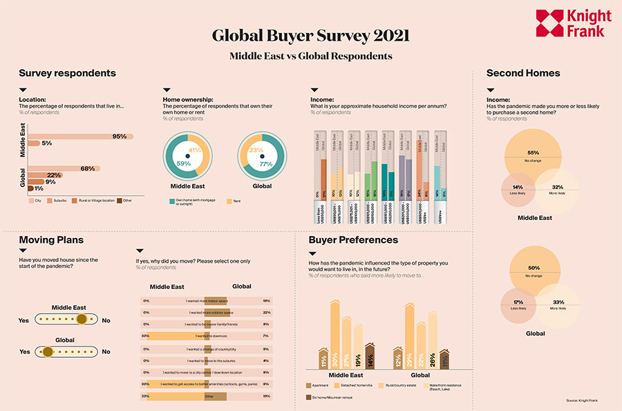 The coronavirus pandemic has driven a shift in attitudes amongst Middle East home buyers, according to the 2021 Knight Frank Global Buyer Survey. The survey represents the views of over 900 Knight Frank clients across 49 key global markets. People around the world have had a chance to reassess their home-work-life balance as a result of the